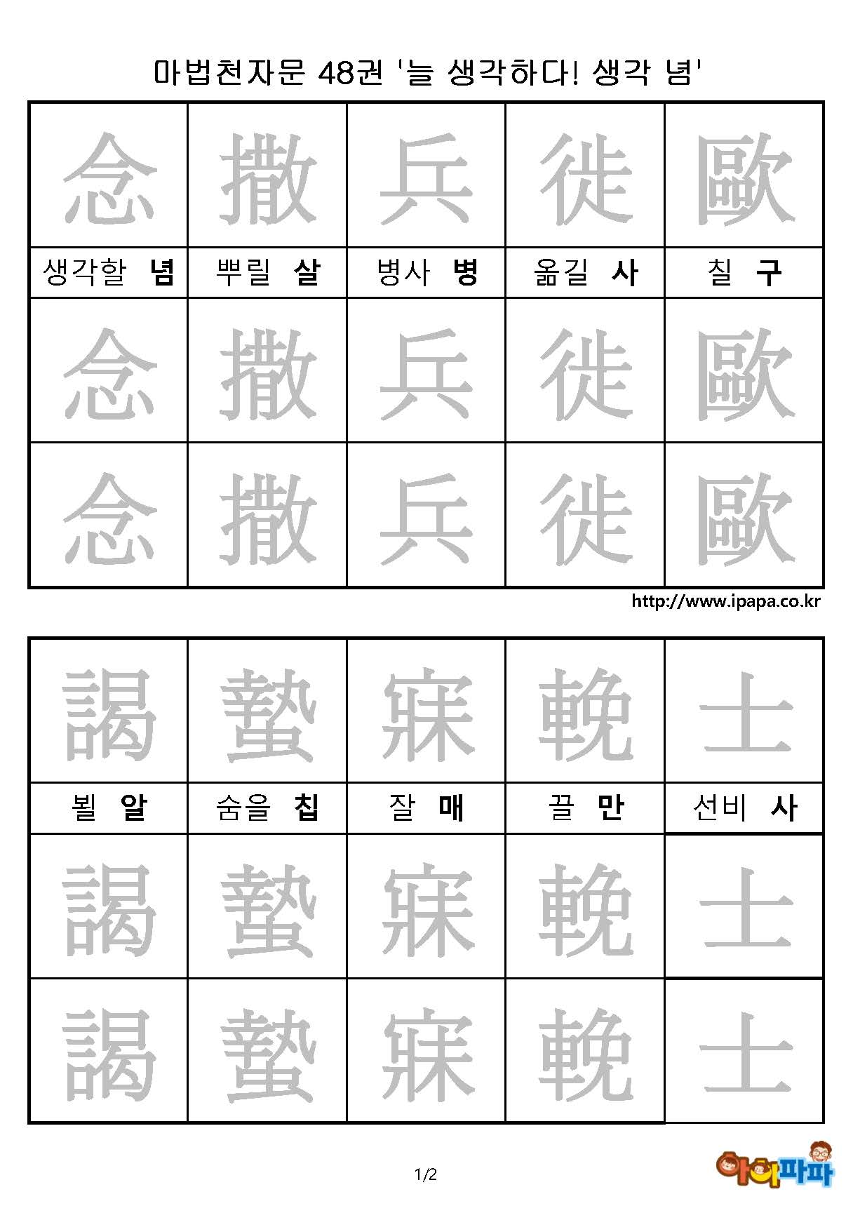 마법천자문 48권 '늘 생각하다! 생각 념' 한자따라쓰기 다운로드 아래 pdf클릭