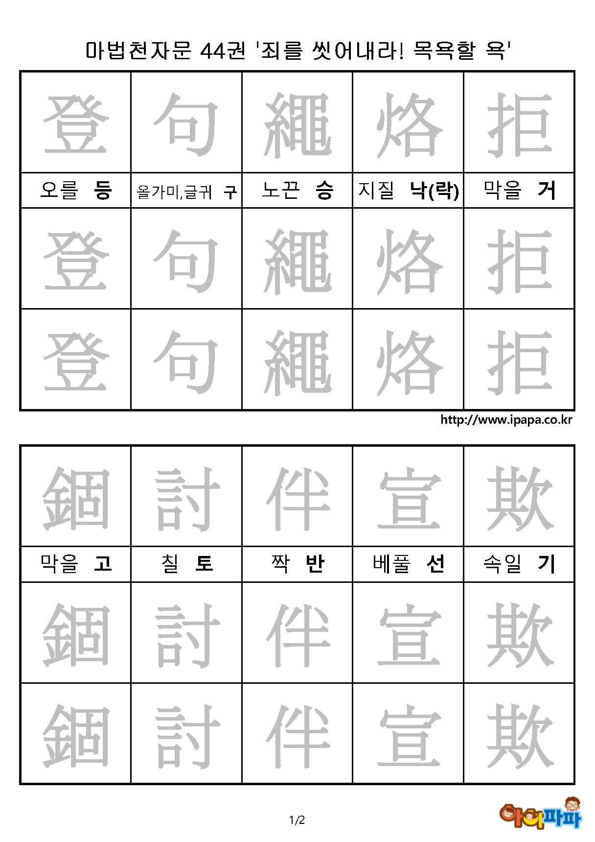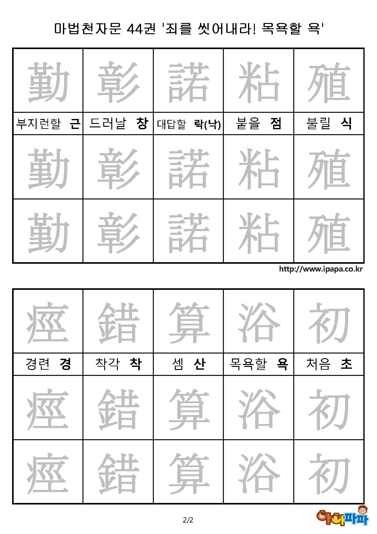 마법천자문 44권 44권 '죄를 씻어내라! 목욕할 욕' 한자따라쓰기 다운로드 아래 PDF 클릭